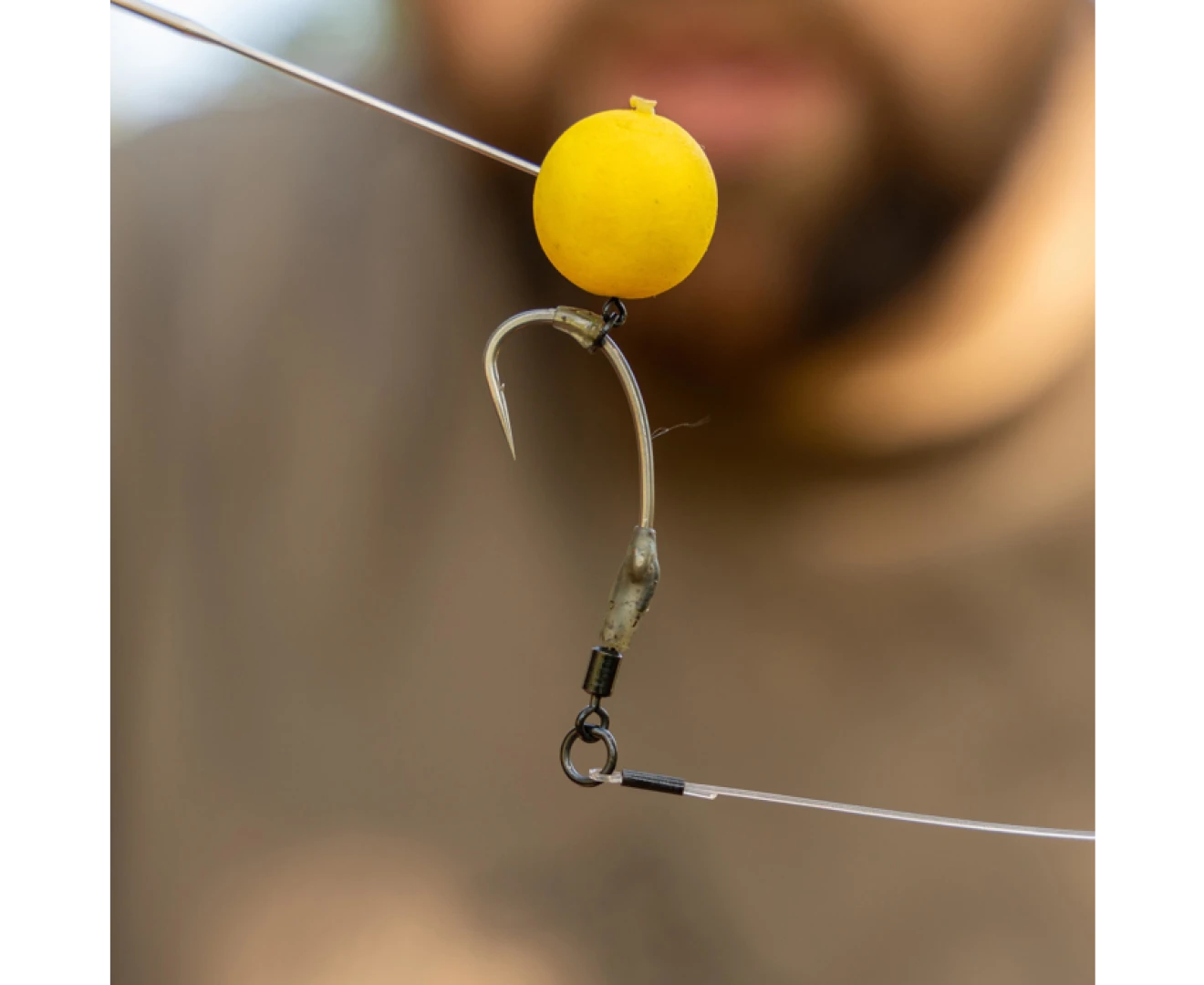 Zestaw zawiera dedykowane krętliki Ronnie Swivel, które zapewniają prawidłową rotację haka podczas brania. W połączeniu z dopasowanymi sleeve’ami tworzą spójny system, gwarantujący płynną pracę i wysoką skuteczność zestawu.