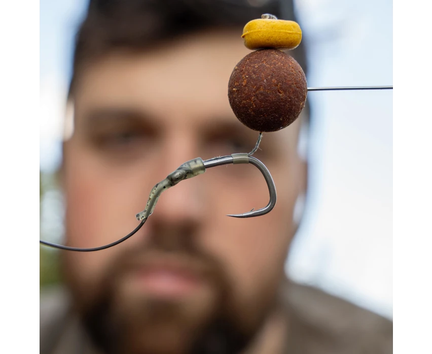 Dzięki wydłużonej konstrukcji wersja XL jeszcze lepiej stabilizuje pracę haka, sprawdzając się przy większych przynętach i mocniejszych przyponach. Nakładki wiernie imitują efekt rurki termokurczliwej, eliminując konieczność jej podgrzewania – wystarczy założyć je na hak, by uzyskać gotowy, profesjonalny zestaw. Kamuflaż FleckTone, oparty na zielonej bazie z nieregularnymi plamkami, skutecznie wtapia się w dno łowiska, minimalizując ryzyko spłoszenia ryb.