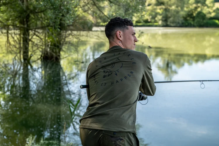 Nash Make It Happen Carp Logo Long Sleeve T-Shirt to praktyczna i stylowa odzież dla każdego karpiarza – idealna na ciepłe dni, kiedy liczy się ochrona, wygoda i wędkarski charakter.