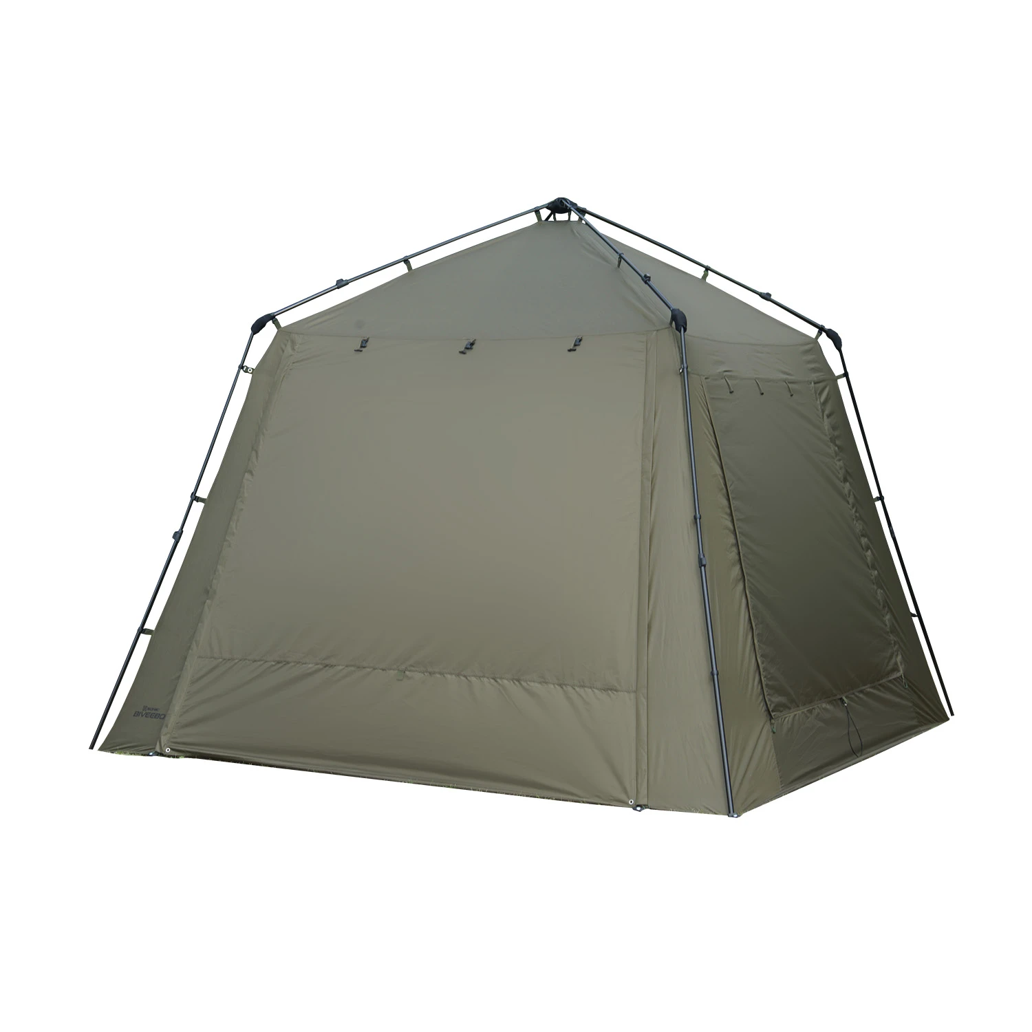 Jednym z największych atutów BiveeBo jest bardzo szybki system rozkładania oparty na stalowym, teleskopowym stelażu Slick-Speed, który pozwala przygotować schronienie w krótkim czasie. Wysoki otwór drzwiowy zwiększa komfort użytkowania oraz poprawia widoczność ze środka namiotu, co jest szczególnie przydatne podczas aktywnego łowienia i obserwacji łowiska.