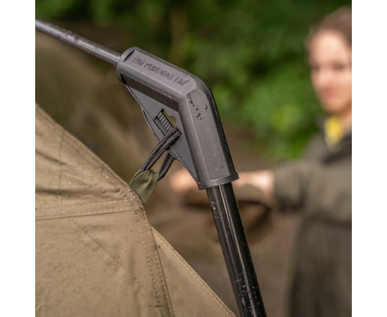 W zestawie z namiotem znajdują się dwa drążki do ganku, które umożliwiają łatwe stworzenie przestronnego, chronionego przed warunkami atmosferycznymi ganku z przodu namiotu. To świetna opcja na przechowywanie sprzętu wędkarskiego, gotowanie posiłków lub relaks w cieplejsze dni. Ponadto, namiot wyposażono w solidne bloki narożne, które zapewniają stabilność i wytrzymałość w trudnych warunkach.