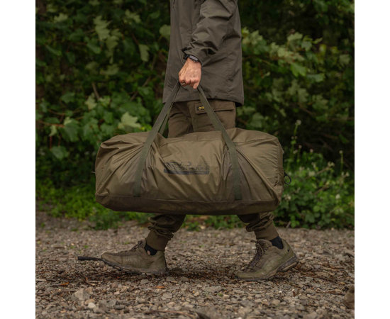 Revolve Screen House Compact jest łatwy w transporcie dzięki kompaktowym wymiarom po spakowaniu (73 x 26 x 20 cm). Namiot waży zaledwie 10,4 kg, co czyni go stosunkowo lekkim, jak na jego przestronność. W zestawie znajduje się podłoga, torba transportowa, liny odciągowe oraz śledzie, co ułatwia transport i montaż namiotu na miejscu wędkarskim.