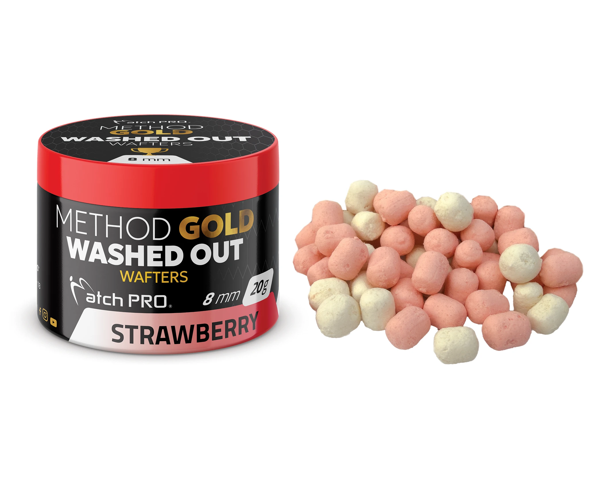 MatchPro METHOD GOLD Wafters 8 mm – WASHED OUT STRAWBERRY to skuteczna, aromatyczna przynęta, która zwiększa szanse na brania nawet najbardziej ostrożnych karpi. Doskonała do prezentacji w naturalnej pozycji nad dnem, dla wędkarzy ceniących profesjonalne przynęty.