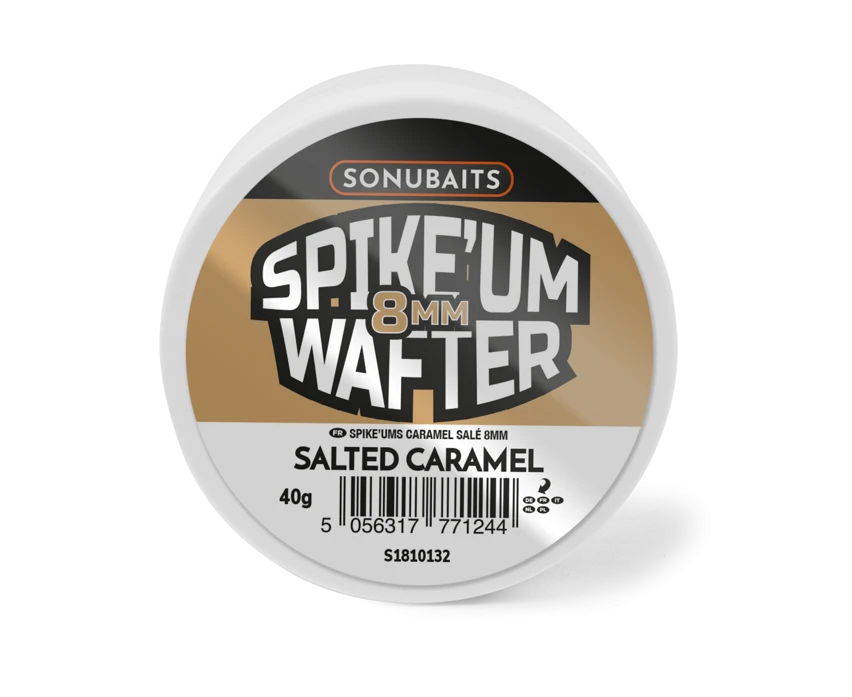 Sonubaits Spike’Um Wafter 8 mm – Salted Caramel to przynęta haczykowa typu wafters o słodko-słonym, karmelowym aromacie, stworzona z myślą o skutecznym łowieniu metodą method feeder. Produkt powstał w wyniku wielu testów łowiskowych, dzięki czemu zachowuje wszystkie zalety klasycznego waftersa, łącząc je z odpowiednią miękkością umożliwiającą łatwe nabijanie na bagnet lub igłę. Jednocześnie przynęta jest na tyle trwała, aby nie spadała podczas rzutu i nie była łatwo zrywana przez drobnicę.